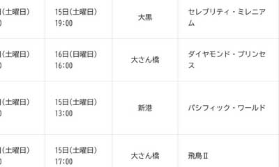 | 2025/03/12-15 飛鳥Ⅱクルーズ(宮崎・鹿児島~横浜) |