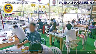 裏の釣堀は、家族連れや野球帰りの小学生でにぎわっています。 |