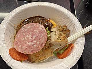 デミオムの上に、いろいろのっけ。懇親会の料理、どれもおいしかった。 |