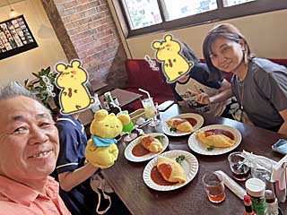 ![]() 落ち着いた雰囲気なので、ゆったりランチが出来ます。 同行のエミーさんは、食事制限のため、オムは食べす。 |