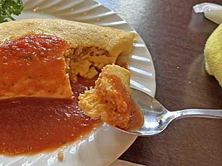 ![]() オムりタ―ノ(ナポリタンのとろとろ玉子のせ)1200円(サラダ付)。とろとろ玉子の中は、ナポリタンスパゲティ。知っていても、割ってびっくり。 オムライスの周辺研究のために食べました。 |
