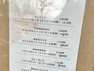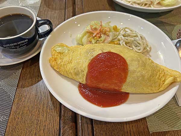 ![]() オムライスドリンクセット(コーヒーor紅茶)1150円。ザ・喫茶店オム。ケチャップ、薄タマゴ巻き、ケチャップライス。 |