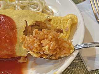![]() オムライス1700円。上のパセリがレトロ。美しい見栄え。 |