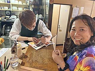 ![]() ![]() レトロな赤い日よけ。店主・前田さんのお母さんとお話し。前田さんの腰が早くよくなりますように。 |