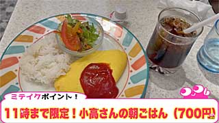 北極星 エキマルシェ大阪(大阪駅) 朝8時から11時までのモーニングタイムで注文できる「小高さんの朝ごはん」(700円)、オムライスが生れるきっかけとなった。2022年リニューアル。(25/9月) https://tabelog.com/osaka/A2701/A270101/27087718/ ![]() |