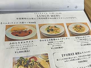 ![]() ![]() オムライスメニュー5種。あと、ハヤシオムライスもある。 |