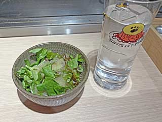 ![]() サラダと野菜のコンソメス-プ。このお店がすばらしいのは接客。年配の男性(店長?)、黒服の女性スタッフ共にテキパキと働く。 |