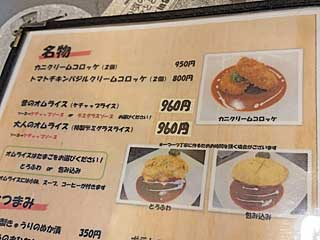 ![]() オムには、味噌汁、うどんサラダ、アイスコーヒーが付きます。960円は安い。メニュー表は、オムの選択肢が多い野で迷う。昔のオムライス(ケチャップライス)960円ソースはケチャップorデミを選択、大人のオムライス(特製デミグラスソース)960円ソースはケチャップ、たまごは、ふわとろと包み込みを選択 (全てに小鉢、スープ、コーヒーつき)。 |