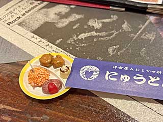 箸置きがオムライス! ビートルズ好きの店主のBGMやポスターやテーブル上の写真など。こんなお店が近所に欲しい。オムがない昼間でもまた行きたい! 店主の齊藤修次さん、この記事が分かりやすい。 『洋食屋 にゅうとん』創業者に伺ったお話 https://www.tamatebakonet.jp/shop/detail/id=2326 |