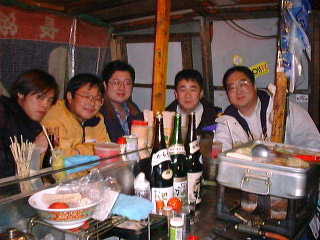 博多の屋台にて、ラーメン仲間と。
