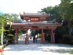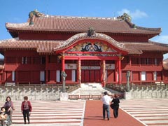 2001年12月20日(木) 沖縄の5つのグスクと、その関連遺産4つは、「琉球王国のグスク及び関連遺産群」として2000年に世界遺産に登録されました。 那覇市内からバス10分さらに徒歩5分。明治維新まで続いた、琉球国の王城。太平洋戦争で焼失。平成4年に復元。日本風、中国風、琉球オリジナルの入り混じった造りが面白い。入場料800円。 ![]() (場所:那覇市中心より東北東4km) |