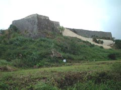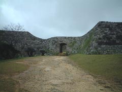 2001年12月21日(金) 那覇市内からレンタカーで2時間。北山王の居城。沖縄に流れ着いた源為朝の子供が城主だったという伝説もある。曲線を描く城壁と、青い海(私が行った時は雨)が見所。入場料150円。 (場所:那覇市より北北東55km) |