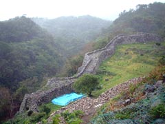 2001年12月21日(金) 。那覇市内からレンタカー1時間半。ヨーロッパの城址のような石組。 (場所:那覇市より北東23km) |