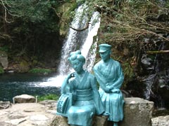 修禅寺は紅葉ぴーく!!(99年11月29日)日と月で、伊豆の修善寺温泉に行ってきました。きっしい夫婦の結婚15周年記念旅行。お銚子お一人様1本つき(笑)。泊まったのは、横山大観画伯ゆかりの”新井旅館”。窓の外には桂川のせせらぎが眺められて、露天風呂に浸かりながら紅葉を眺めて、「うーむ日本に生まれてよかった」。 (修禅寺の紅葉。お寺の名前は”しゅぜんじ”でなくて”しゅうぜんじ”) 今回見たところは、三島では、レッサーパンダもいる”楽寿園”、頼朝が100日通った”三島大社”、伊豆国分寺塔跡。修善寺では、頼朝の弟”源範頼の墓”、頼朝の息子2代将軍”源頼家の墓”。韮山では、”頼朝政子の新居跡”、”政子産湯の井戸”、”堀越御所跡”、頼朝の流された”蛭ケ小島”、北条早雲の”韮山城址”。 蛭ケ小島からは、雄大な富士山が絶景。「こんな処に流したのが失敗。毎日富士山を見ていたら、大志を抱くにちがいないわ」と妻談。 |