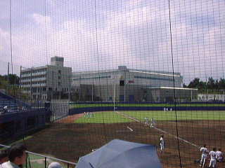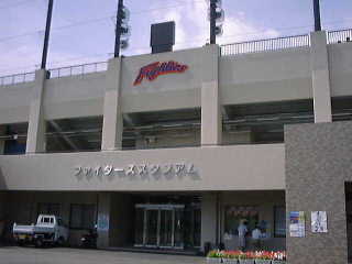 「ファイターズスタジアム」のレフト後方には立派な「選手寮」と「室内練習場」がある。