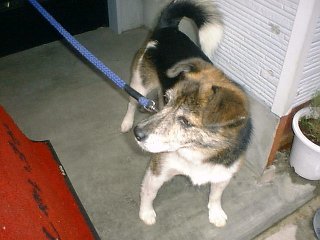 下丸子の新犬『ポテト』!!(10月19日付)我が家から、下丸子駅に歩いて行く途中の韓国食材屋さんの飼い犬。韓国食材屋さんなので『キムチ』という名前だと我が家では予想していたが、本当は『ポテト』という名前であった。中小型犬の雑種で、毛並みはゴワゴワしている。撫ぜてやってもあまり反応の無いおとなしいワンコであるが、散歩が大好きだそうでご主人さまが出てくると大喜びする。 写真は、散歩の準備をしてご主人を待ちわびるポテト。 |