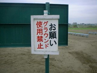 月例ソフトボール雨で中止に!!(10月24日付)毎度お馴染みの月例ソフトボールが雨で中止に。責任感の強い監督・きっしいは、朝9時にグランドに行って、他の人を待つ間ランニングと素振りでトレーニング。結局だれも来なかった。グラウンドは使用禁止だし、小粒の雨は降っているし、まあ仕方ないよね。 |