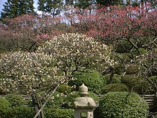 『池上梅園』に梅を見に行く!!(3月6日付)大田区池上の『池上梅園』に行った。斜面には、白、ピンク、赤の梅が満開。プーンと良い香りが漂います。昔々、西行法師は「願はくは花のもとにて春死なむその如月の望月の頃」と謡いました。分かりますね、その気持ち。 |