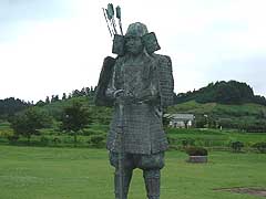 レンタカーで移動。三角ラーメンを食べて、『平安の風渡る公園』を見学。源義家像。後三年の役で、雁の乱れを見て伏兵を見破ったとされる伝説の地。 |