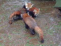 熱川バナナワニ園で、打たせ湯をしているワニ発見。ニシレッサーパンダ達は雨の中でも元気に遊んでいます