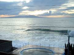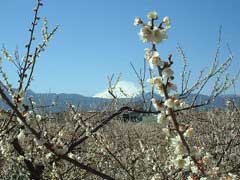 翌朝はイイ天気。宿の窓から大島が見えました。曽我梅園は富士山をバックに見事です