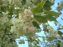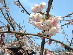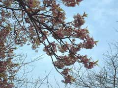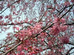 上野公園のカンザクラ。散り始め。葉っぱが出ているのがヒカンザクラの特徴。