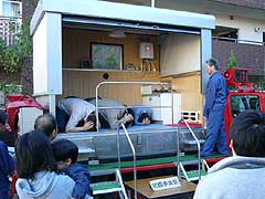 13時からマンションの防災訓練。起震車で関東大震災の震度7を体験。