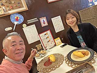 ![]() 仲良くなったマスターと記念撮影。キラキラオムステッカーも貼っていただきました。 |