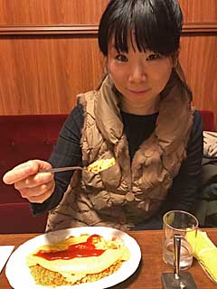 | 2019年 1月15日(火)13時 時々雨 今年11個目 歌舞伎座横の揺するとプルプルのオムレツライスの喫茶店。アメリカから帰国中の知人と。 <きっしい> ★★★★(甘いとスパイシー、柔らかと固め。コントラストオムライス) <あいこ嬢>(また食べたくなるオムライス。オムレツとご飯のバランス具合が好みでした。ご飯の硬さ、オムレツのtexture (卵液とミルクまたはクリームの分量、白身と黄身との混ぜ具合)がなんとも言えない。ご飯がポロポロでもない、しっとりでもない。そして、ご飯の量とオムレツの大きさが絶妙。どちらも少なすぎず多すぎず。そして、そこに合わせたケチャップの使い方がプロだなぁと思いました。お店の雰囲気(照明 とか インテリア)もちょうどいい、店員さんもテキパキとされて、落ち着いて食事ができました。また是非、伺いたい。) |