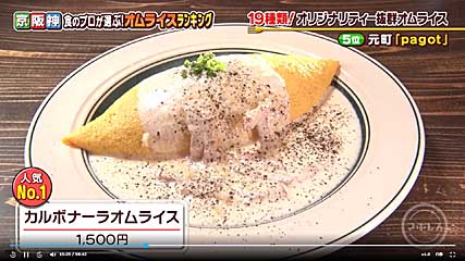 | 2025年10月1日(水)放送 水野真紀の魔法のレストラン 「食のプロが選ぶ!京阪神ホンマに美味しいオムライスランキング」 殿堂入り https://tver.jp/episodes/ephmvn07t9 |