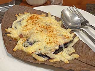 ![]() ナスとチーズの朴葉焼き。女性に一番人気。夜も、モヤシサラダが付いてきます。大好き! |