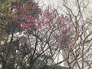 ![]() 表の立て看板。私は10分待ちで入店できましたが、14時の閉店時間を過ぎても、外に4人待っていました。近くの神社の紅梅が満開です。 |