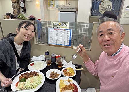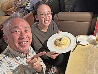 ![]() 35年来の付き合いの友人。オム食べるのははじめて。ナポリタンセットも注文してシェアしました。中はケチャップライス。 |