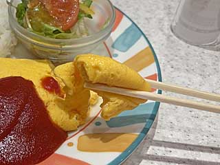 ![]() 中はケチャップライス。メニューは、ケチャップオムライスとオムハヤシ。 |
