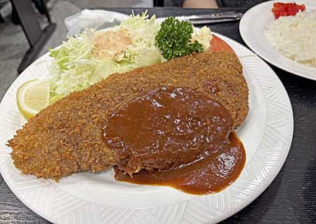 ![]() ビフカツ1550円+ごはん小250円。ビフカツ柔らかくてデミソースがウマくて絶品! |
