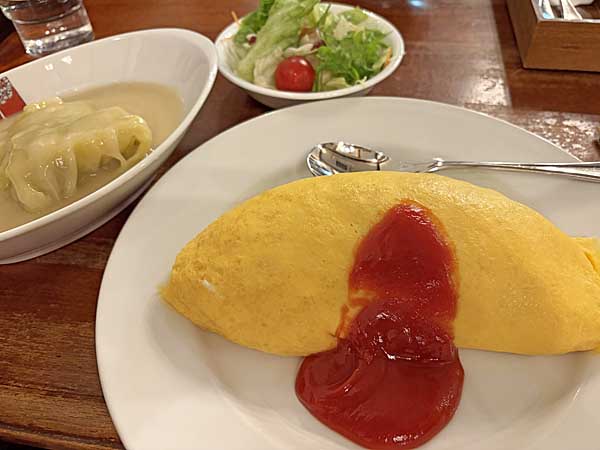 ![]() 私は、オムライス(サラダ付)1600円。カウンターの特等席。 |