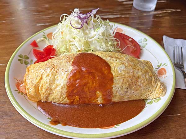 | 2026年4月6日(月)12時 曇 今年31オム目 2回目。雑貨屋さん併設のカフェ。女性客が多い。 <きっしい> ★★★☆(やさしい味のオム。いろいろおかずがのっていてうれしい。) <せっちゃん> (たまごフワフワで、デミはやさしい味で、おいしかった!) |