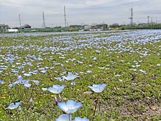 ![]() 天満大池の交差点の角。近くの、ネモフィラの畑。 |