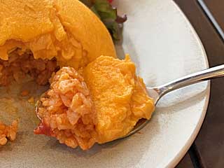 ![]() 中はケチャップライス。玉ねぎスープ、大きくてうれしい。 |