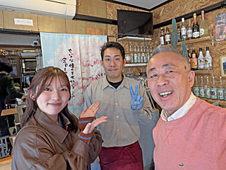 お店の外で、2代目(私と同じ年)、3代目と記念撮影。3代目に話を聞いて謎が解けた。 「なぜ、最後までタマゴの裏側がトロトロなのか?(ライスからの加熱で固くなるはず)」 答:「ライスは先に炒めてから、しばらくおいて、温度を下げるんです。 その後、タマゴで包むので、熱々ではないので、タマゴが固くならないのです。」 なんと。今まで26回通っているの、気が付いていなかった。オムライス調理は奥が深い! |