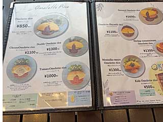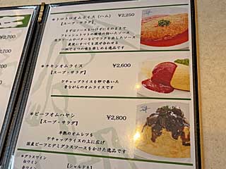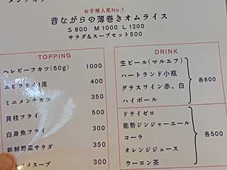 ![]() 全てのオムステッカーが貼ってあります。夜のオムライスメニューは10種類。 |