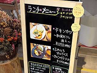 ![]() カフェの入口。天満大池、にじいろファーミンの近くです。 |