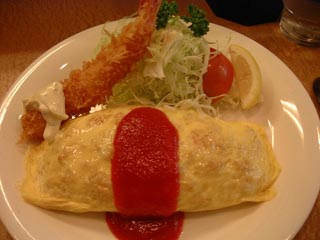 オムライス780円にエビフライ1本300円付き。オムライスのもちろんの美味さに加えて、エビフライもサクサクで美味い。