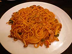 季節限定オムライス バジルトマトオムライス880円。「夏オム!」という感じ。載かっている冷たい具はパスタと同じですが、夏限定のオムライスは初体験です。このお店は工夫してますね。 |