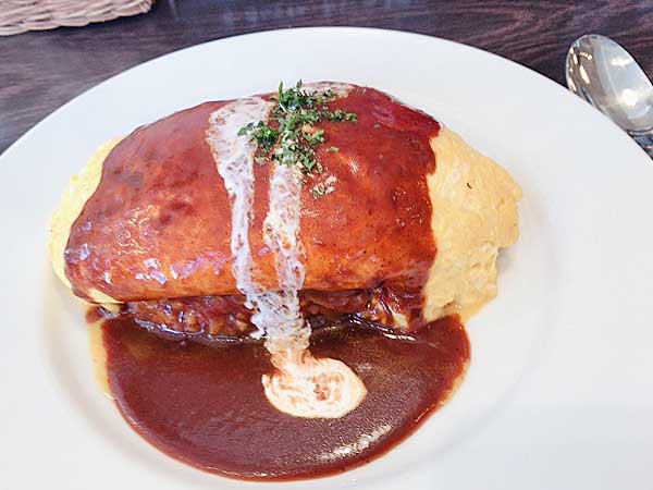 ふわふわスフレのオムライス!ふわふわスフレのオムライス2350円(税込)に初挑戦。厚さ5センチのふわふわスフレタマゴ、下にスクランブルエッグ。下のご飯はこだわりオムライスと同じ。 間にスクランブルエッグが挟まっているお蔭で、スフレとご飯がマッチする。工夫を感じるオムライス。 値段の高さは、手間が係る分だそうです。思った通り。 |