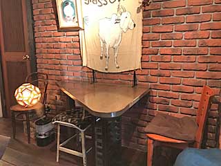 ![]() 店内こじんまり。右は、奥の半個室席。 |