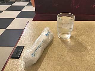 ![]() 布おしぼりが、レトロ喫茶の特徴。店名は、マドンナーMadonna。なんで、”ナー”と伸ばすんだろう。 |