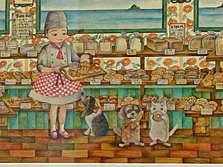 |   昼時なのに他にお客さんがいなくてのんびりと、お店の方たちとお話し。壁の古時計がレトロ。 |
