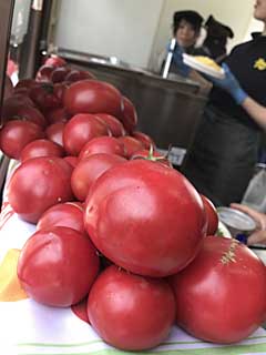 ![]() シュガートマトいっぱい。スタッフの、黄色いTシャツ。 |