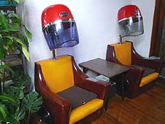 ●女湯脱衣場 普段は入れない女湯側に。応接セットがドンとあります。話し好きのおかみさんのいる番台、脇のハシゴで上がります。 ![]() 赤ちゃん用の台と、頭からかぶる乾燥機。珍しい。 ![]() |